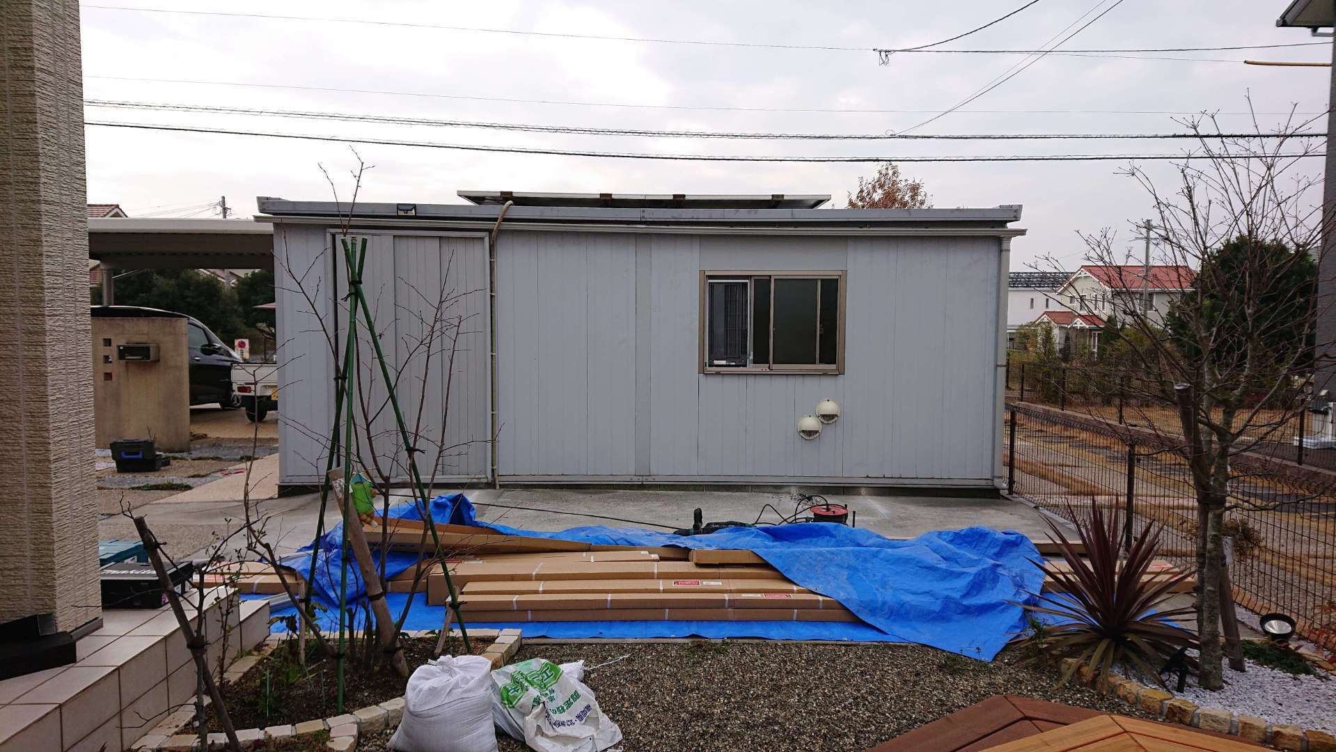 基礎コンクリートが固まってしまったらパネルの設置を行います。
